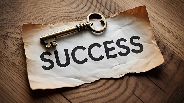 Motivational 2026 concept with brass key and success text on aged paper