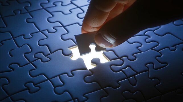 Hand putting piece into puzzle hole