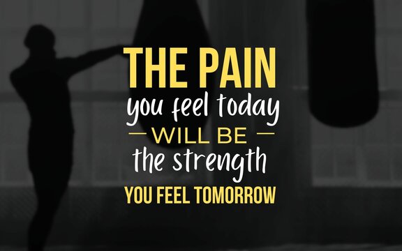 Motivational quote: 'The pain you feel today will be the strength you feel tomorrow,' over a silhouette of a boxing scene, inspiring perseverance and resilience.