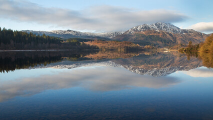 Loch Achray and Ben Venue mountain, in the Trossachs, Scotland, UK.