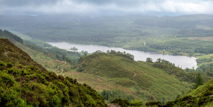 A view across Loch Achray in the Scottish Highlands on a summers day