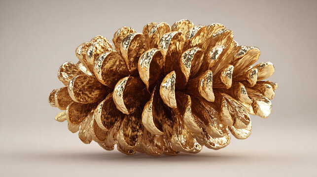A close-up shot of a golden pine cone, highlighting its intricate details and texture