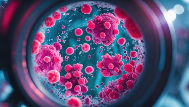 Microscopic 100x image of AFB stainig. Microbacterium Tuberculosis Bacteria (MTB). Sputum or phlegm smear, increase contrast