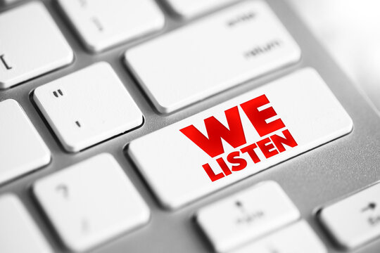 We Listen text button on keyboard, concept background