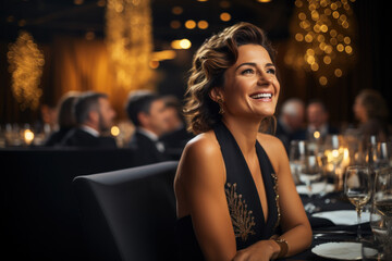 A CEO radiates happiness while attending an industry gala, acknowledging the strength of her business network and relationships.  Generative Ai.