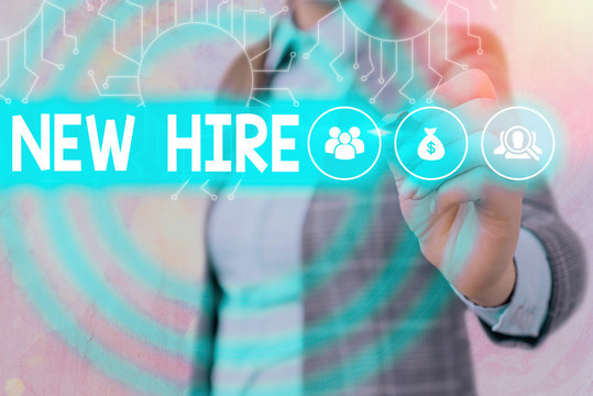 Conceptual hand writing showing New Hire. Concept meaning someone who has not previously been employed by the organization