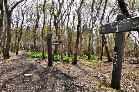 三国山ハイキングコースの道 早春の三国山稜の大洞山山頂