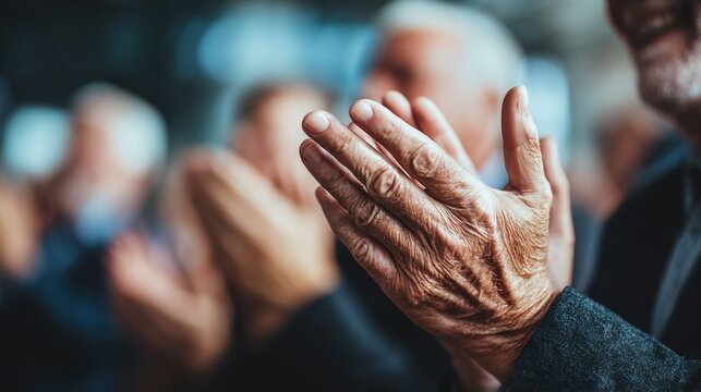 Asian woman listening at banquet networking dinner with candle centerpiece