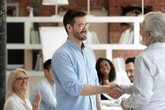 A handshake between two individuals, symbolizing agreement or collaboration.