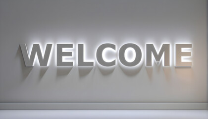 Welcome text on a silver  background