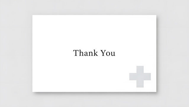 Minimalist thank you card with white background and subtle grey plus symbol in corner