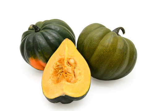 pile of Acorn squash, Cucurbita pepo, turbinata, or pepper squash isolated on white background
