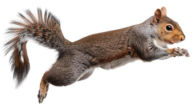 Cute fluffy grey squirrel perched on a transparent background