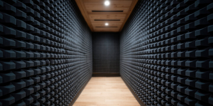 Recording room interior, walls lined with noise-reducing acoustic panels