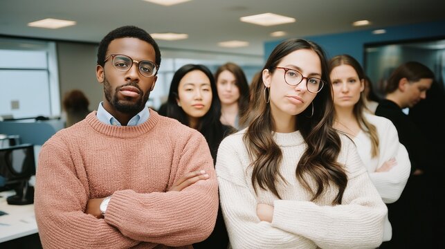 Diverse corporate teammates collaborate in an office setting while demonstrating professionalism and focus