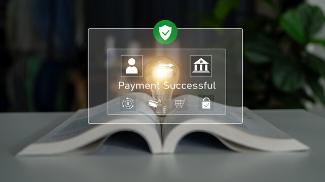 Successful transaction message showing secure payment. Payment confirmed, secured, payment processed, and payment completed with trust and transaction integrity. Marrow