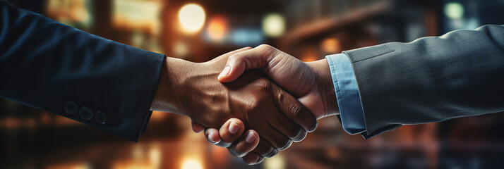 Businessman handshake for success deal in business merger and acquisition. AI Generated