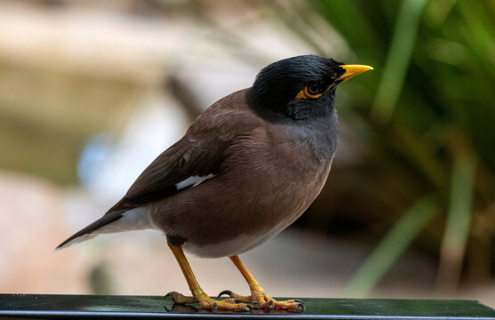 Common Myna - Acridotheres tristis or Indian myna , sometimes spelled mynah,member of the family Sturnidae (starlings and mynas) native to Asia, invasive in Australia