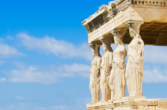 close up details of Erechtheion temple in Acropolis of Athens, Greece