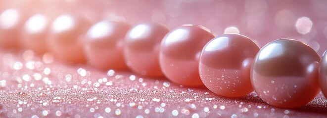 Texture made from transparent square acrylic beads scattered on a pink background.