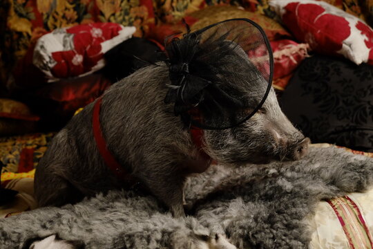Pig and dove acting like human at home like real pets. Some people have their own desires as feeling comfortable with not usual pets.