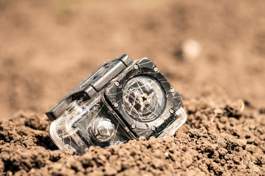 Ultra-HD mockup of a waterproof action camera, realistic lens details, clear background.