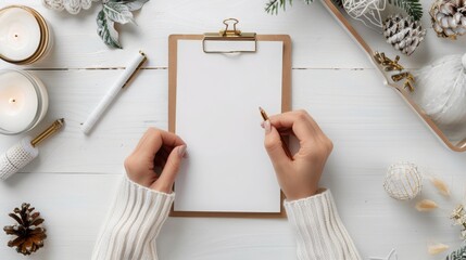 New year's 2025 resolutions on desk with notebook, coffee cup, and plant, featuring goals list, action plan, and checklist concept for new year planning and organization