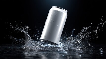 Energy Drink Can Action Shot – Dynamic Water Splash Product Scene