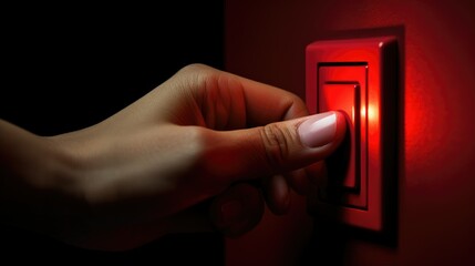 Hand flipping a light electrical switch in a dark setting, creating a moment of illumination in the shadows.