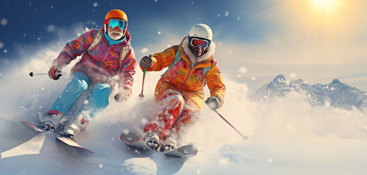 Diverse female duo posing in satin bomber and mustard jacket with warm lens flare