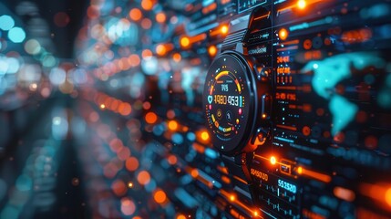 Global finance and data integration with world map overlay