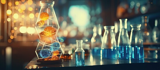 DNA sequence analysis in genetic lab with microscope and lab vessels With copyspace for text