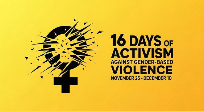 Anti-Violence & Gender Equality Campaign (16 Days of Activism) Visual: A hand breaking a chain, orange ribbon, gender symbols silhouette
