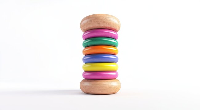 Wooden stacking toy with colorful rings