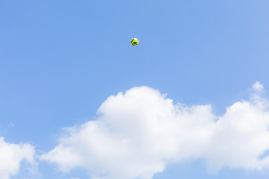 a soccer ball kicked in the blue sky in autumn  showa kinen park, tachikawa city