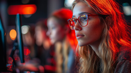 A female student focused on a lecture at university, actively participating in academic activities, learning, and engaging in higher education studies.