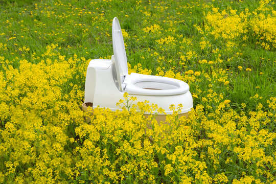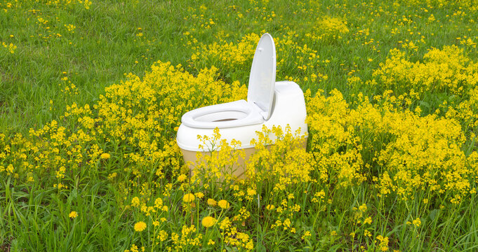 dry closet among green grass and yellow flowers