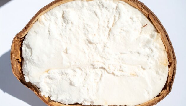 Baobab fruit (Adansonia digitata) on white background, pulp and powder, superfood