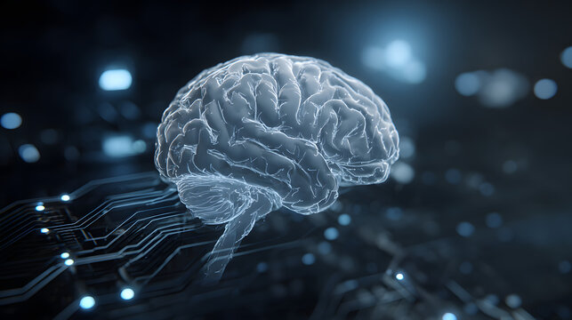 AI Brain Processing Data with Generative Artificial ntelligence Concept Vouch.AI Assistant Brain Processr with LLM Technology, BigData, Machine Learning, Geerative AI for Business Suport, Future