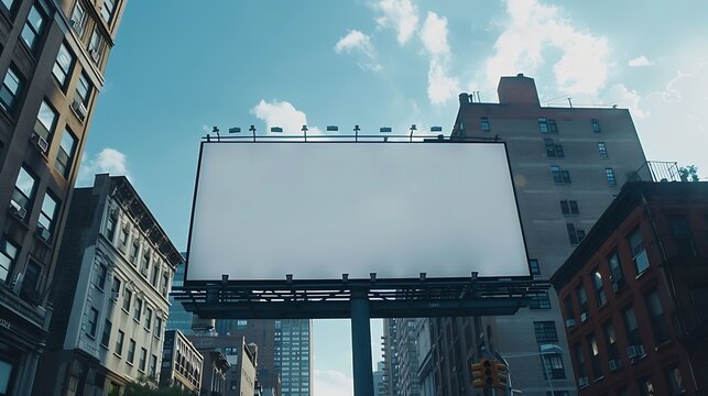 Billboard featuring a white surface for artwork, empty for any text, intended for advertising, messages, or quotes.