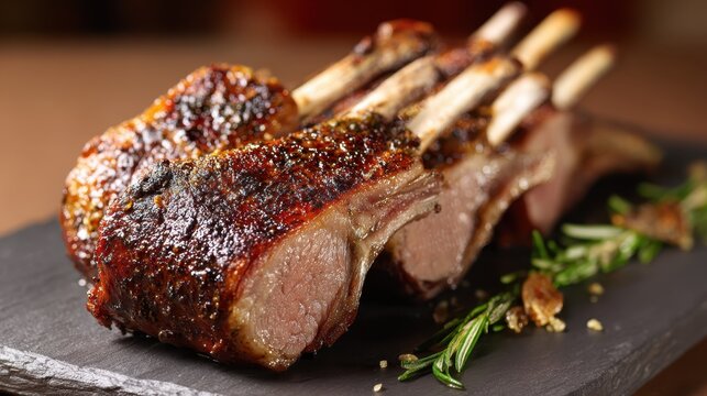 Fresh raw lamb rack with rosemary and lemon for gourmet cooking