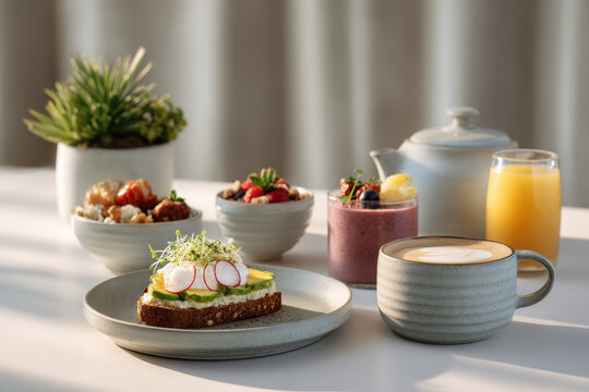 vibrant and colorful vegetarian breakfast spread featuring variety of delicious options