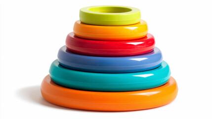 Stacked colorful rings in order of size on a white background