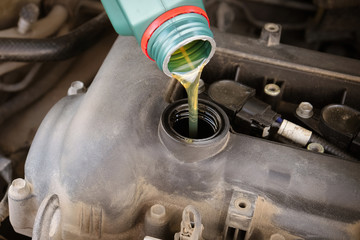 pouring engine oil into the engine