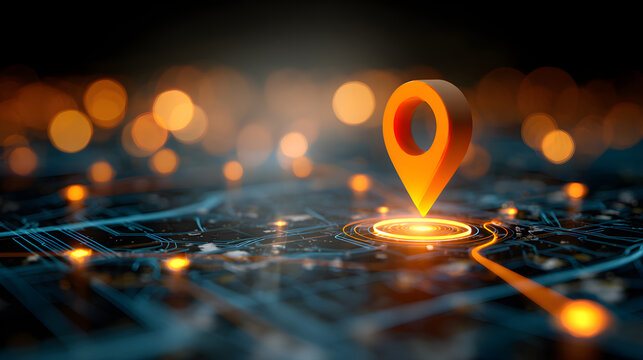 Location on map with points. AI technology in GPS, innovation delivery, map location, future transport logistic, route path concept, GPS point. New location and change address