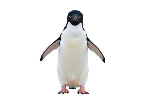 Adelie penguin standing isolated PNG on transparent background, Antarctic bird with black head and white belly for design use