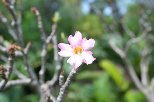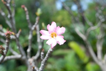 plant adenium arabicum flower on a pot. used for bonsai. selective focus