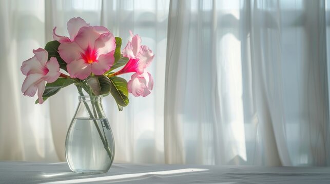 Beautiful Adenium obesum – Pink Desert Rose Blossoms in Sunlight