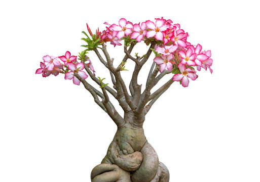 Adenium obesum flowers with other names like Desert rose, Mock Azalea, Pink bignonia or Impala lily. It has pink flower with 5 petals. Transparent background, isolated, panorama picture, PNG file.