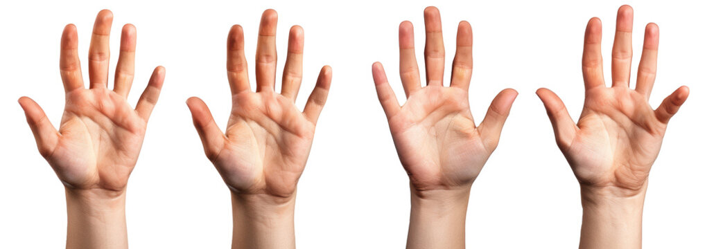 Hands, palms gesturing up, saying hi, greeting, hello, bye isolated on white
